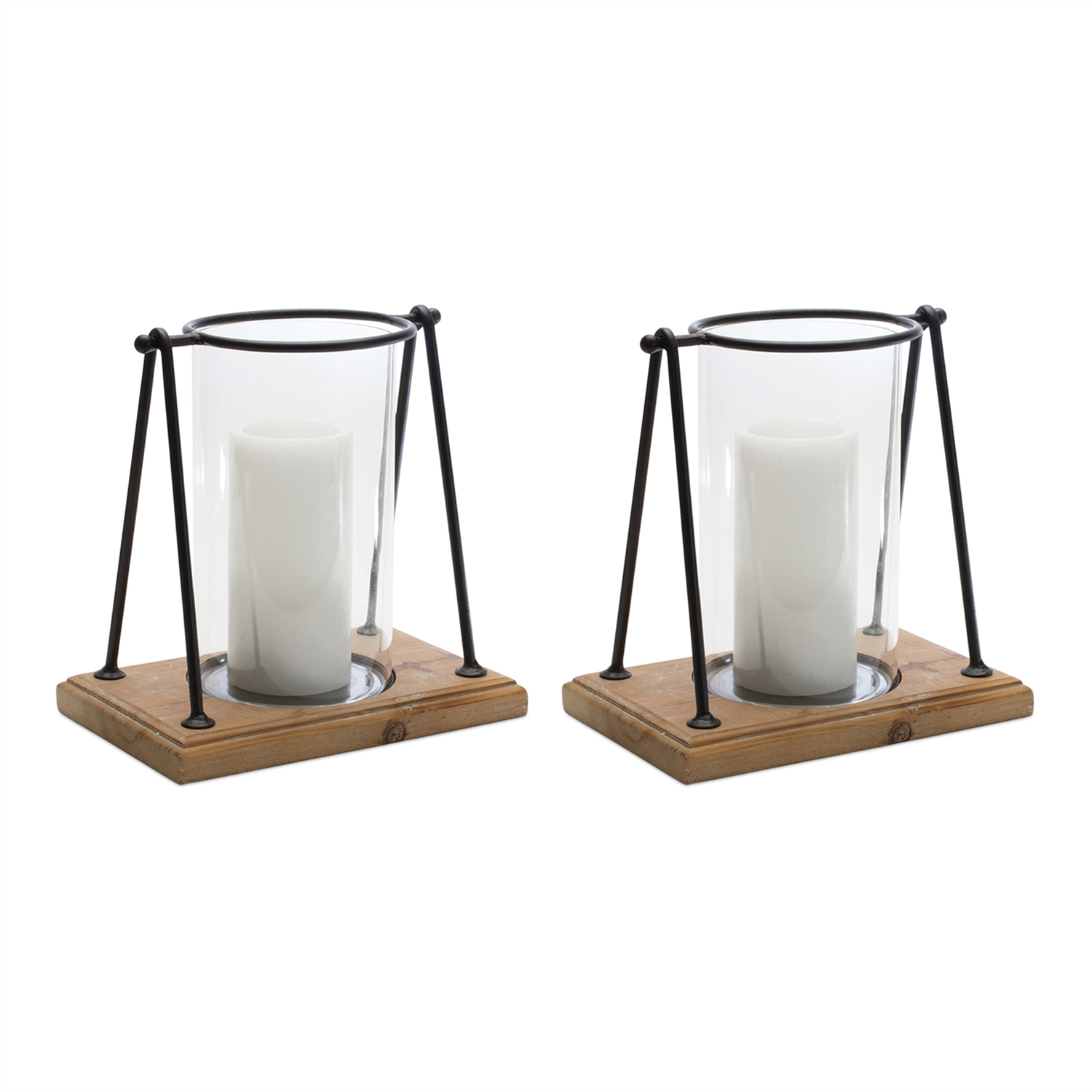 Transform your home's ambiance with the Modern Framed Candle Holder Set. Designed with a sleek A-frame structure, this pair features a natural wood grain base and delicate glass hurricane insert that beautifully complements contemporary and mid-century modern decor. Crafted from durable iron and fir wood, these holders are built to last through countless seasons. Ideal for creating a warm, inviting glow, the set accommodates 3-4" pillar candles (sold separately). Perfect for elevating your tabletops or as part of a stylish centerpiece. Sold in a set of two assorted sizes to create a balanced display in your home.