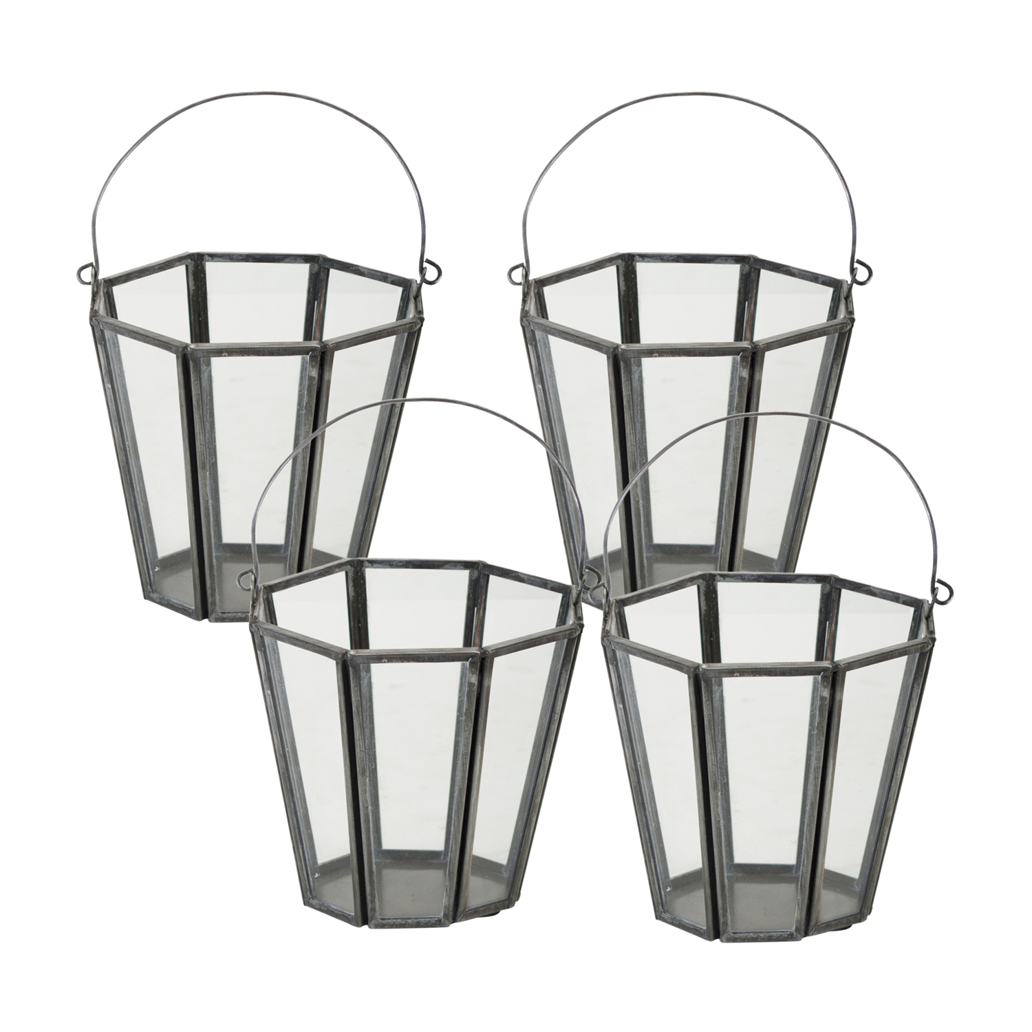 Candle Holder (Set of 4) 4.75" x 4.75"H Glass/Iron
