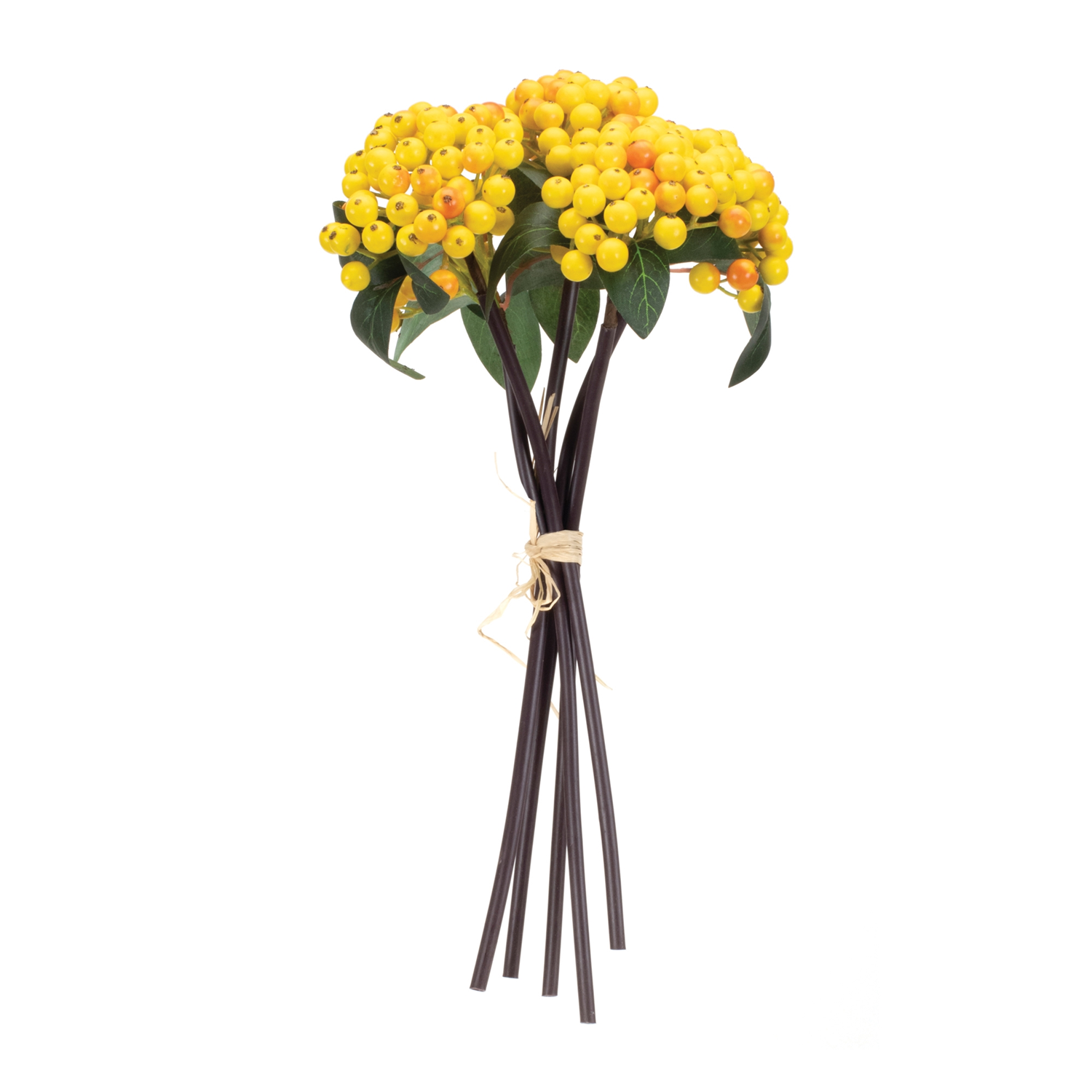 Bring a refreshing touch of nature into your space with this charming Yellow Berry Bundle Set. Designed to brighten any room, these lifelike faux stems feature vibrant yellow berries and lush green accents, making them a perfect addition to floral arrangements, vases, or wall baskets. Crafted from high-quality polyester, foam, and wire, they offer long-lasting beauty without maintenance. Whether enhancing seasonal decor or complementing everyday styles, these faux berry bundles provide a timeless, natural aesthetic to your home. Sold in a set of two matching pieces to create a balanced display in your floral vases and arrangements.