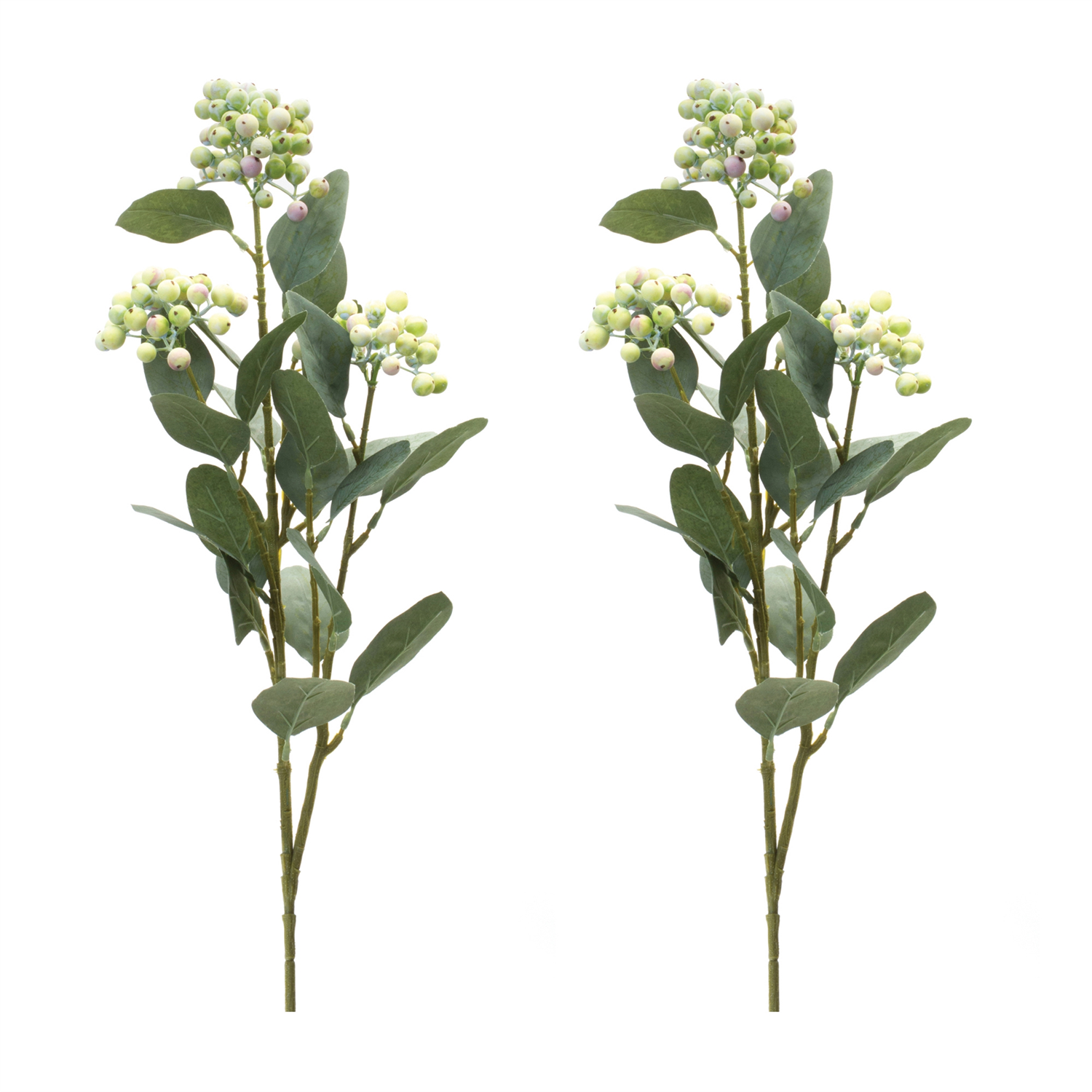 Bring a refreshing touch of nature into your home with this stunning set of Berry Foliage Sprays! Featuring lush green and white hues, these realistic faux stems add an elegant charm to any space. Crafted from high-quality polyester, they offer long-lasting beauty without maintenance. Perfect for vases, floral arrangements, or wall baskets, these sprays provide a versatile, natural accent to your decor. Elevate your home with these lifelike Berry Foliage Sprays today! Sold in a set of two matching pieces to create a balanced display in your floral vases and arrangements.