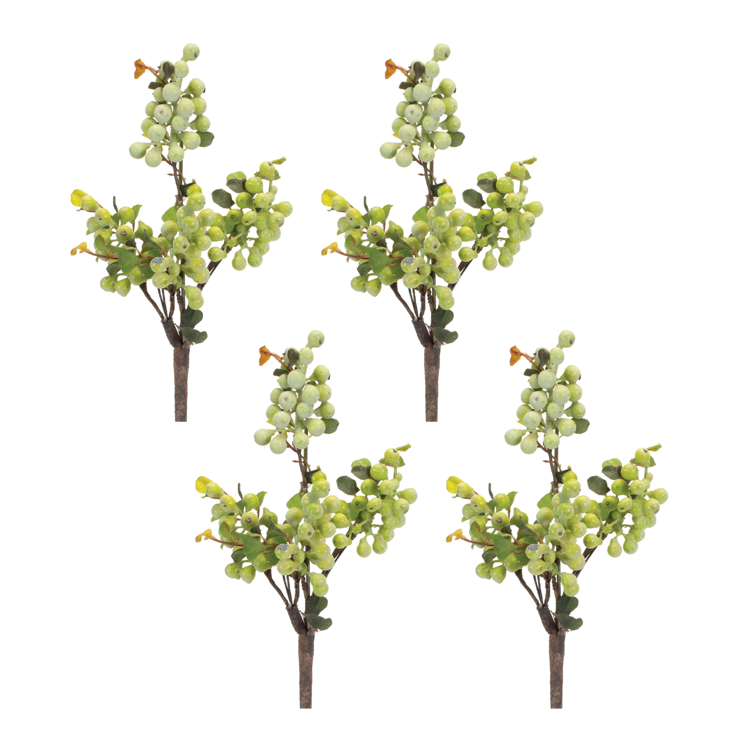 Bring a fresh, natural touch to your space with this set of Green Berry Foliage Sprays. Designed to add vibrant greenery to any arrangement, these artificial stems feature lush berry clusters and delicate foliage for a lifelike appearance. Crafted from high-quality polyester, foam, and wire, they offer long-lasting beauty with zero maintenance. Perfect for vases, floral arrangements, or wall baskets, these sprays are a must-have for effortless home decor. Sold in a set of four matching pieces to create a balanced display in your floral vases and arrangements.