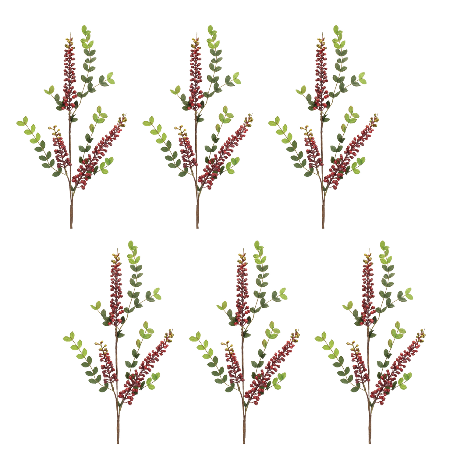 Enhance your home decor with the timeless beauty of these Burgundy Berry Spray Stems. This collection of lifelike faux stems features rich burgundy berries and lush green foliage, adding a vibrant, natural touch to any space. Crafted from durable polyester, foam, and wire, these sprays are perfect for seasonal arrangements, holiday centerpieces, or year-round floral displays. Arrange them in a vase, wreath, or wall basket to create an elegant and inviting atmosphere. Sold in a set of six matching pieces to make a statement in your floral vases or arrangements.