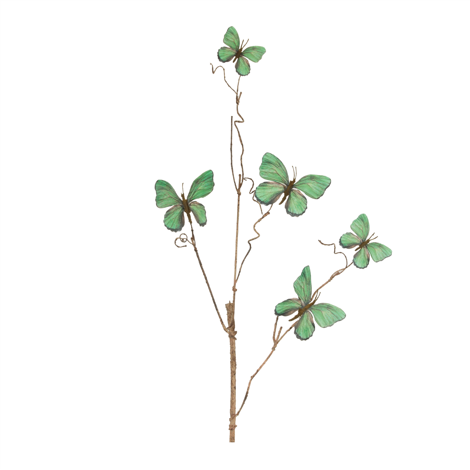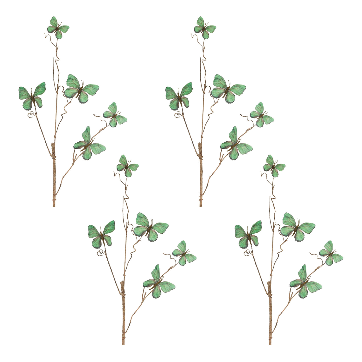 Add a whimsical touch to your home with the Butterfly Twig Spray Set, featuring elegant green and brown tones, adorned with delicate butterfly shapes for a playful yet realistic design. These faux sprays are perfect for infusing your space with natural color and charm. Wired stems and twigs provide sturdy support, allowing for versatile use in tabletop vases, spring floral arrangements, garlands, wreaths, or hanging baskets. Sold in a set of 4 matching pieces, each spray brings a refreshing pop of nature indoors.