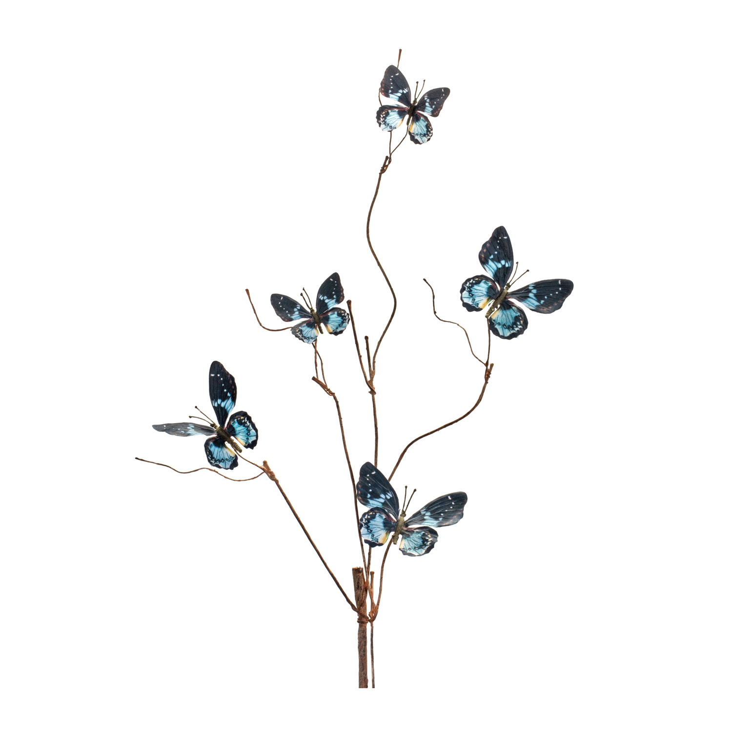 Elevate your home decor with the graceful charm of this Blue & Black Butterfly Spray Set. Featuring delicate butterfly-adorned sprays, this set adds a natural yet whimsical touch to any arrangement. Crafted from high-quality polyester with iron wire stems, these decorative sprays are designed for lasting beauty. Whether placed in a vase or woven into floral displays, they bring an elegant, nature-inspired accent to your indoor or covered outdoor space. Sold in a set of six matching pieces to make a statement in your floral vases or arrangements.