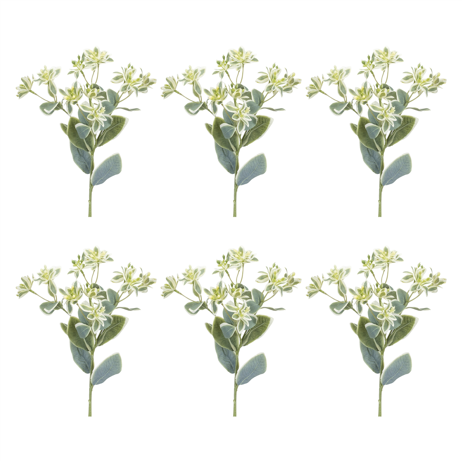Transform your space with the natural beauty of the Euphorbia Floral Stem Set! This collection of exquisite faux stems is designed to add a refreshing touch of nature to any room. Featuring delicate green foliage and soft white blooms, these stems bring an earthy, vibrant feel to your decor. Made from durable polyester, plastic, and iron wire, these artificial sprays are built to last and maintain their beauty for years. Perfect for floral arrangements, vases, or wall baskets, this set is ideal for adding a pop of color to any space, indoors only. Sold in a collection of six matching pieces to make a statement in your floral vases or arrangements.