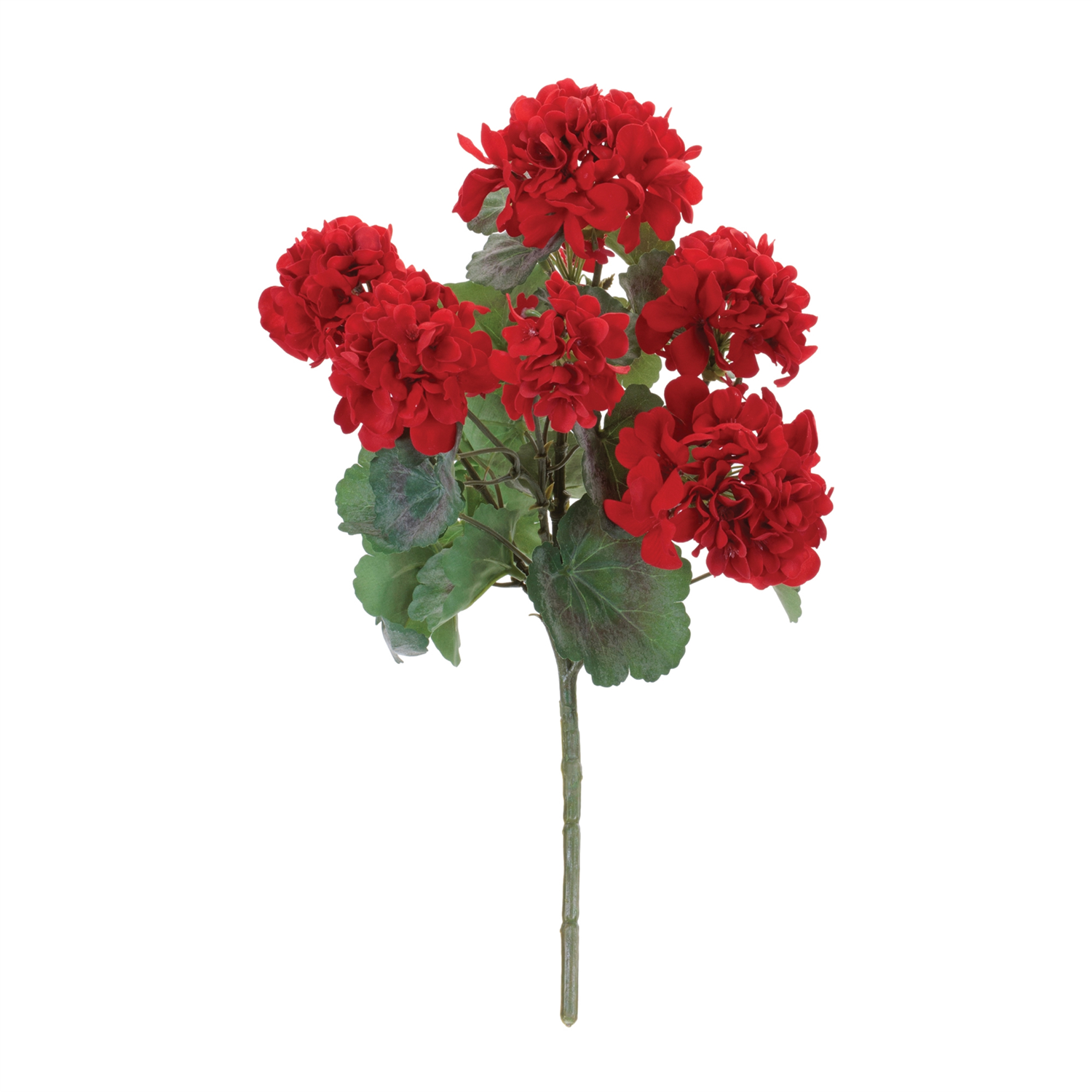 Brighten your space with the Geranium Floral Bush, featuring vibrant red geranium flowers and lush, variegated green leaves. The sturdy, wired stems allow for flexible styling in various displays. Sold as a set of two matching pieces, these faux flowers are perfect for enhancing your tabletop vase, creating a spring floral arrangement, or making a bold statement in wreaths, garlands, or hanging baskets.
