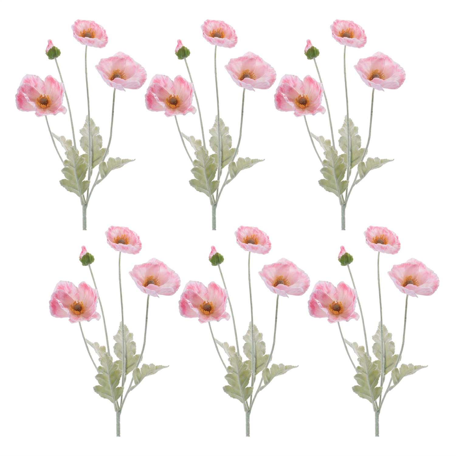 Brighten up your space with the delicate charm of this set of 6 Pink Poppy Floral Sprays. Featuring soft pink poppy blooms accented by green foliage and buds, each spray brings a touch of nature’s beauty into your home. Crafted from high-quality fabric, PE plastic, and iron with wired stems, these versatile sprays can be used in vases, wreaths, garlands, or hanging baskets. Perfect for adding a soft pop of color to any floral arrangement, whether for spring or year-round decor.