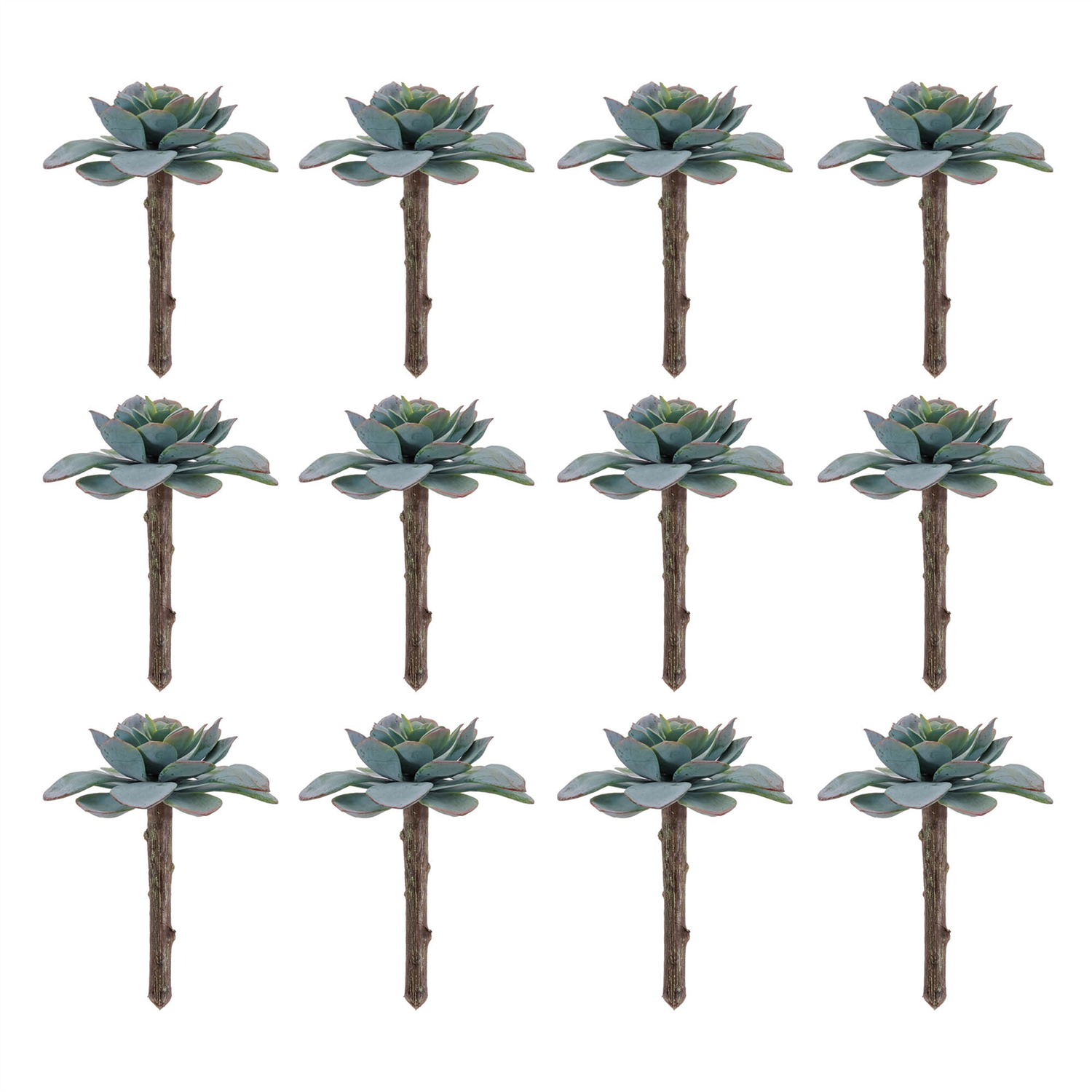 Add a natural, trendy touch to your decor with these Succulent Plant Picks. Featuring natural green tones and subtle variegated accents, each piece brings a fresh, contemporary look to your arrangements. Crafted with a sturdy wired stem, they are perfect for versatile use in any space. Sold in a set of 12 matching pieces, these faux succulents are ideal for bud vases, floral arrangements, wreaths, garlands, or hanging baskets to make a bold, natural statement.