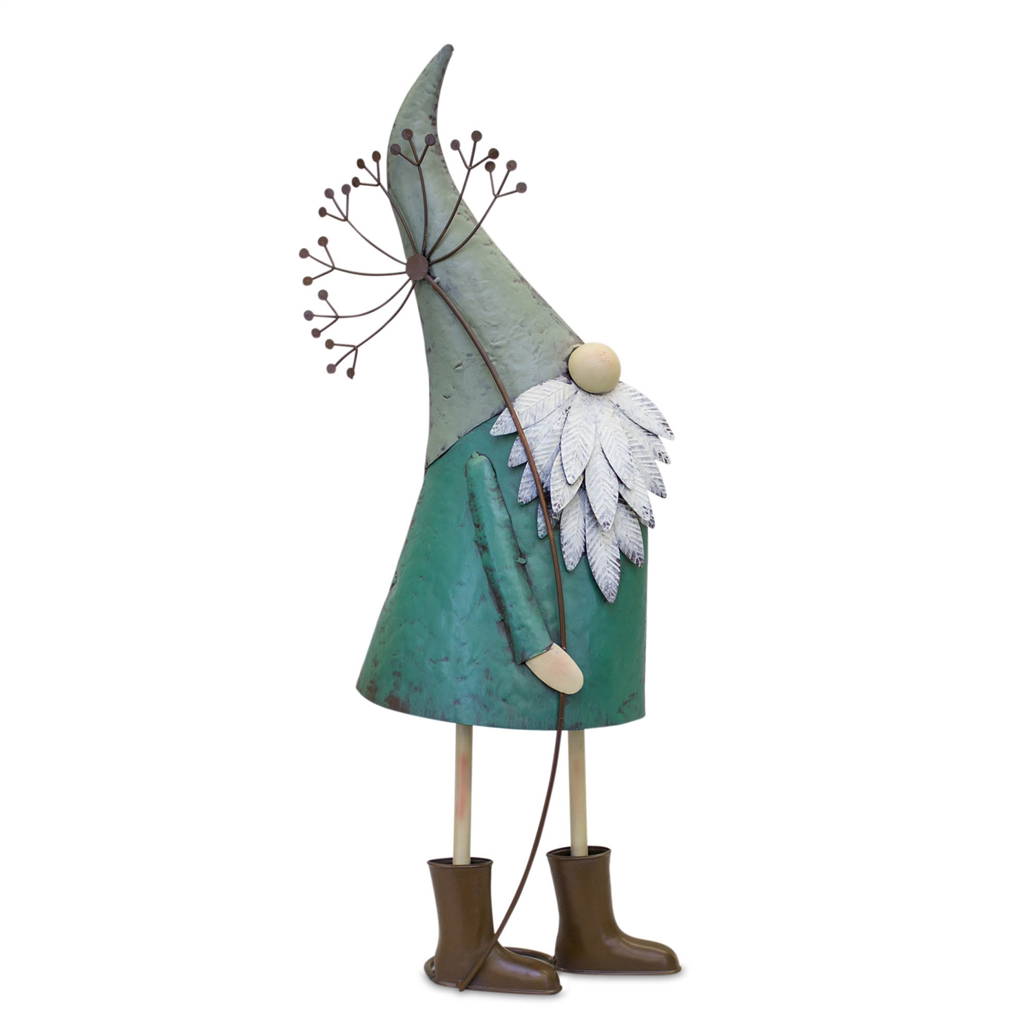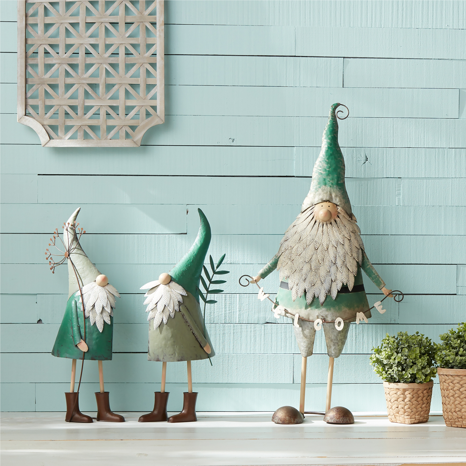 Add a whimsical touch to your outdoor or indoor space with this charming set of Iron Metal Standing Garden Gnomes. Each gnome features a vibrant teal hue paired with a rustic metal finish, creating a delightful contrast that brings a pop of color to your garden, porch, or home. Crafted from durable iron, these gnomes are designed to last through all seasons, making them the perfect addition to your spring or year-round decor. Whether you place them outside to greet guests or indoors for a fun, playful look, these gnome figurines will bring a smile to everyone who sees them. Sold in a set of two assorted designs to create a balanced display in your yard or garden.