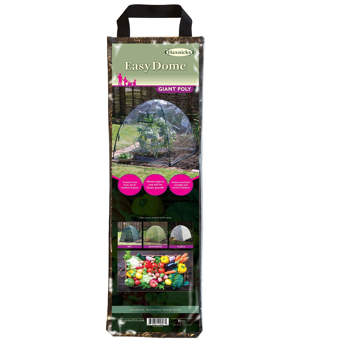 Warms the soil for earlier planting and forms a complete barrier to retain warmth and humidity. It offers protection from severe weather animals and pests. It is constructed from UV-stabilized 150-micron heavy-duty polyethylene and rust-proof galvanized steel hoops. Ground pegs are included. Dimensions: 36"L x 36"W x 36"H 2.5lbs