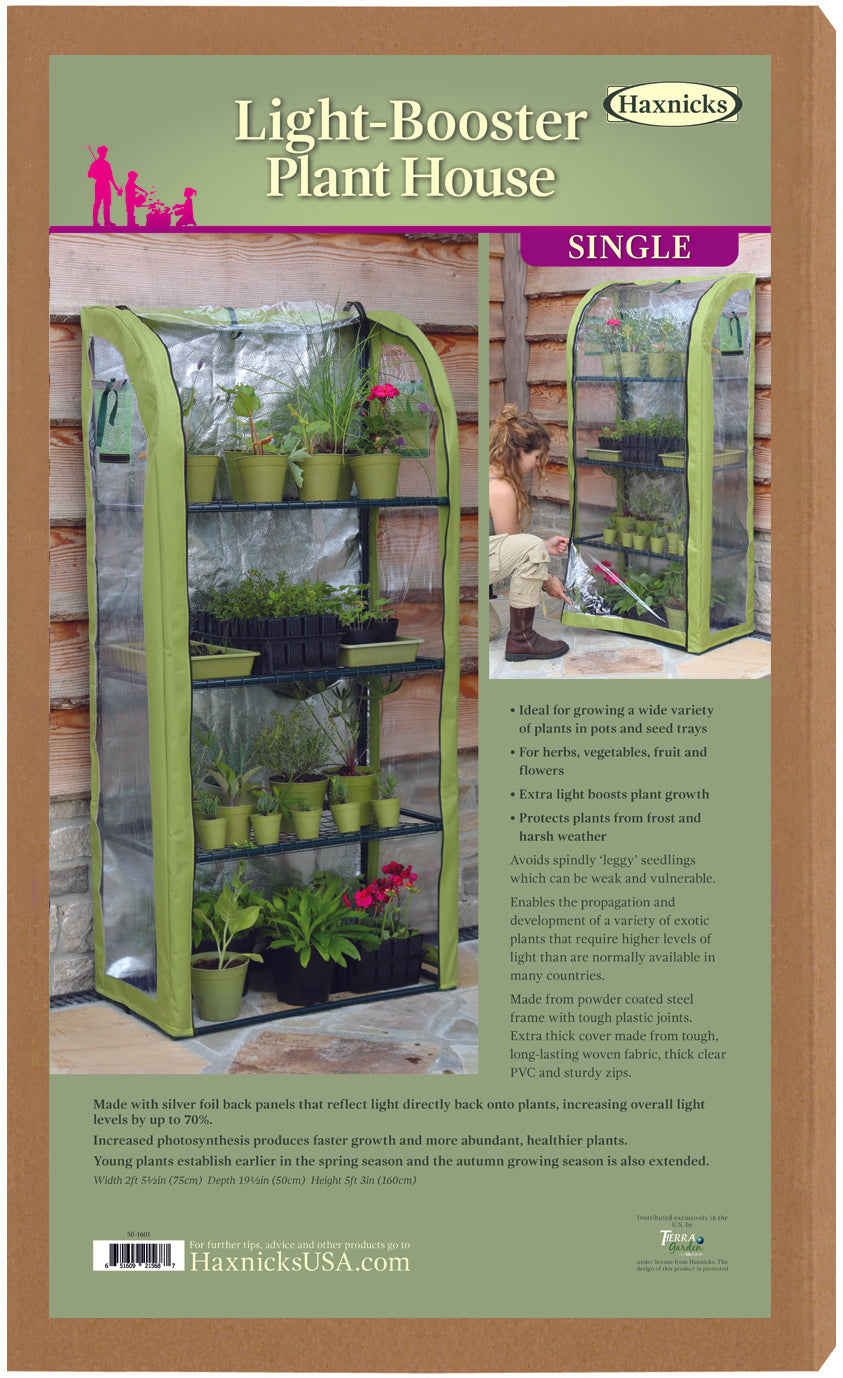 Our Single Light-Booster Plant House is ideal for growing a wide variety of plants in pots and seed trays. The reflective backing bounces light back onto the plants increasing light levels by up to 70%! This boosts growing healthier and more robust vegetables herbs fruit and flowers. The 2 full height zippers allow the front panel to be rolled up providing easier access to the plants inside. The side vents are covered in micromesh which prevents the Plant House and your plants from overheating. Product: 29.5"W x 63"H x 19.5"D 10.9lb. Pack: 17"W x 31"H x 2"D. Pack Size: 1