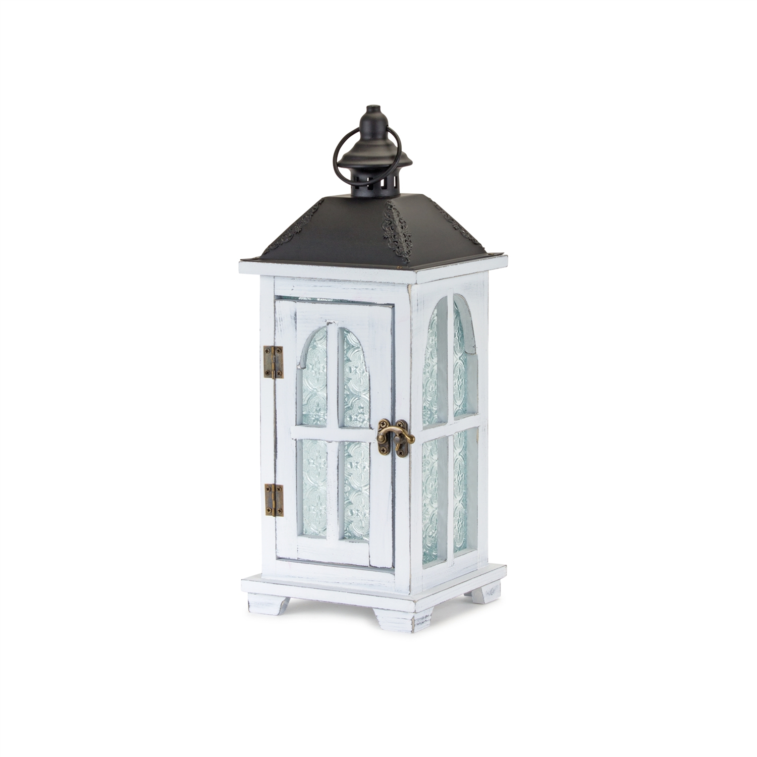 Add a warm and inviting glow to your home with this stunning set of White Wood Lanterns. Featuring intricate frosted glass panels and a natural wood finish, these lanterns effortlessly complement modern farmhouse, rustic, and country-style decor. The sturdy metal tops ensure lasting durability, making them a timeless accent for both everyday and seasonal styling. Whether placed on a mantel, tabletop, or entryway, simply add a real wax or LED candle to create a cozy ambiance. Sold in a set of two assorted sizes to create a balanced display in your home.