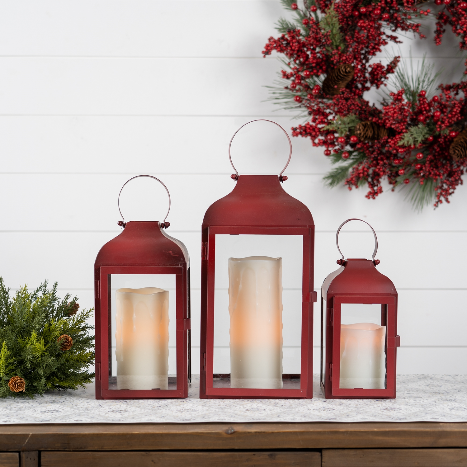 Lantern (Set of 3) 10"H, 12.75"H, 16"H Iron/Glass