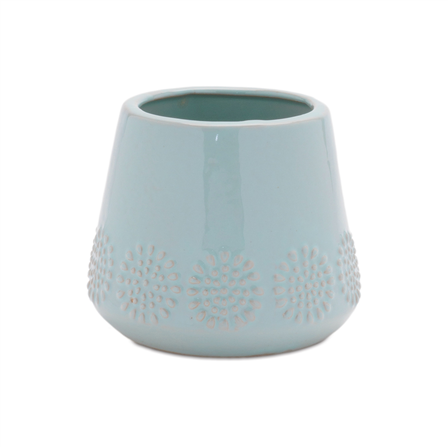 Enhance your space with the bold and modern Ceramic Starburst Pattern Planter Set. Featuring cool blue tones and a glazed finish, these planters are designed with a textured starburst pattern that adds depth and interest. The tapered shape gives them a contemporary look, making them ideal for displaying both real or faux potted plants. Sold in a set of two assorted sizes, they are perfect for indoor and outdoor covered use.