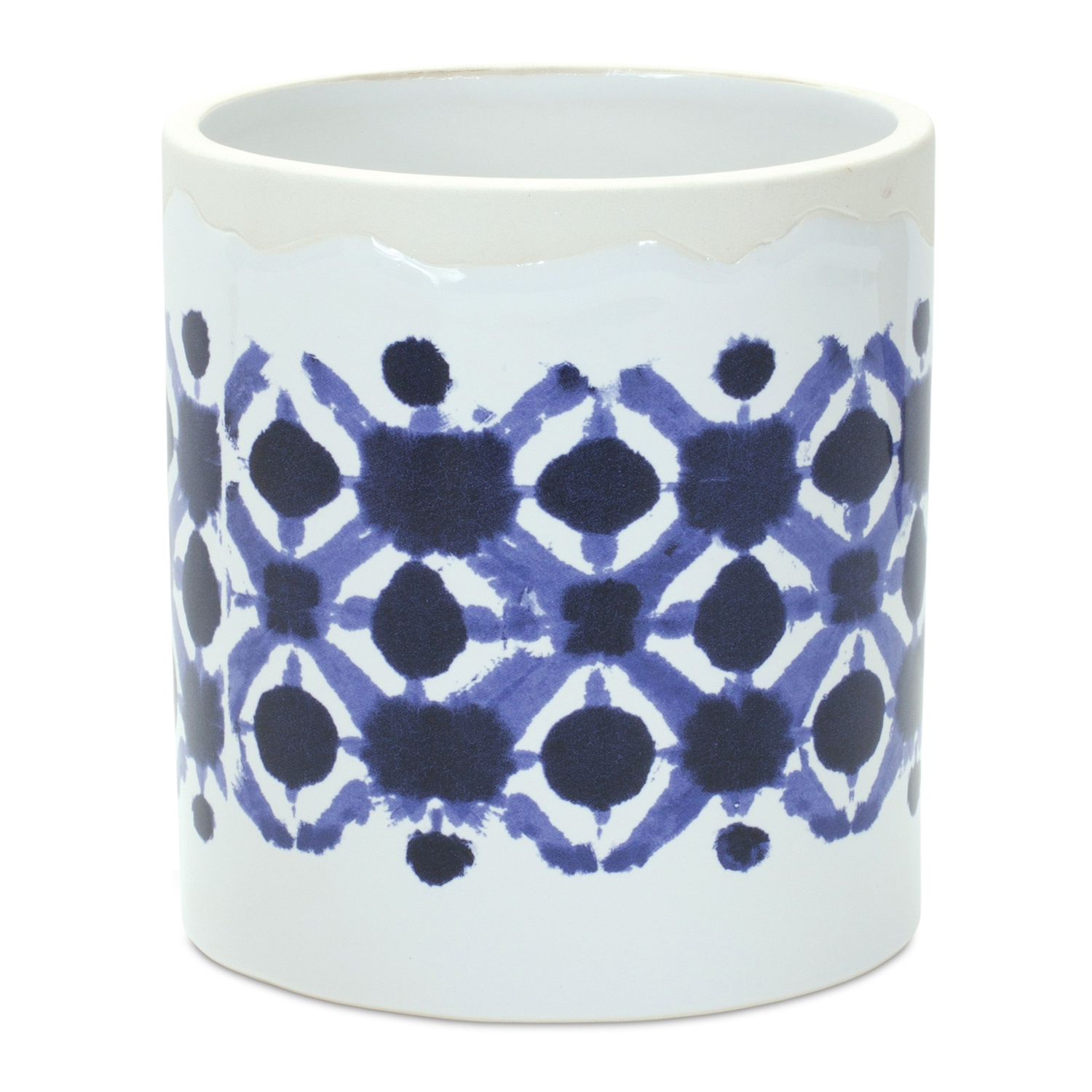 Elevate your plant styling game with this chic set of Tie-Dye Ceramic Pots. Designed with a modern blue and white swirl, these planters add a bold yet calming accent to your indoor or outdoor space. Perfectly sized to house your favorite faux or real greenery, their durable ceramic build ensures lasting beauty through every season. Whether on a shelf, windowsill, or entryway table, these pots bring a fresh, artistic vibe to your home decor. Sold in a set of two assorted sizes to create a balanced and memorable display in your home or patio setting.