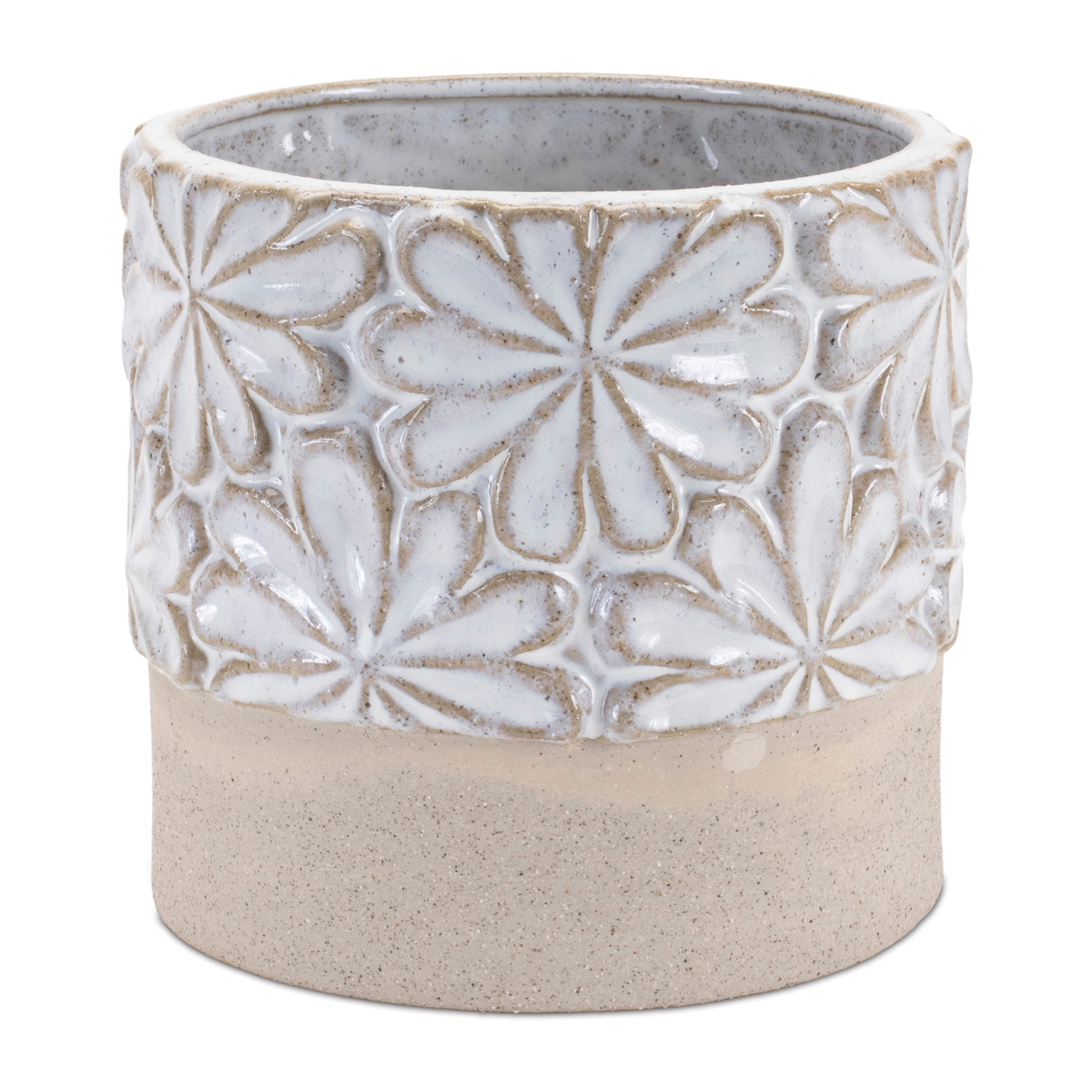 Add a touch of elegance to your space with this Ceramic Floral Planter Set. Perfect for any plant lover, these planters feature a charming floral design with a rustic unglazed base. The cool grey and beige tones bring a sophisticated vibe to any decor, while their sturdy ceramic construction ensures durability. Whether showcasing live plants or faux florals, this set is an ideal way to create a captivating display in your home, patio, or garden. Perfect as a gift for plant enthusiasts, this planter collection enhances any indoor or outdoor setting. Sold in a collection of two matching pieces to create a balanced and memorable display in your home or patio setting.