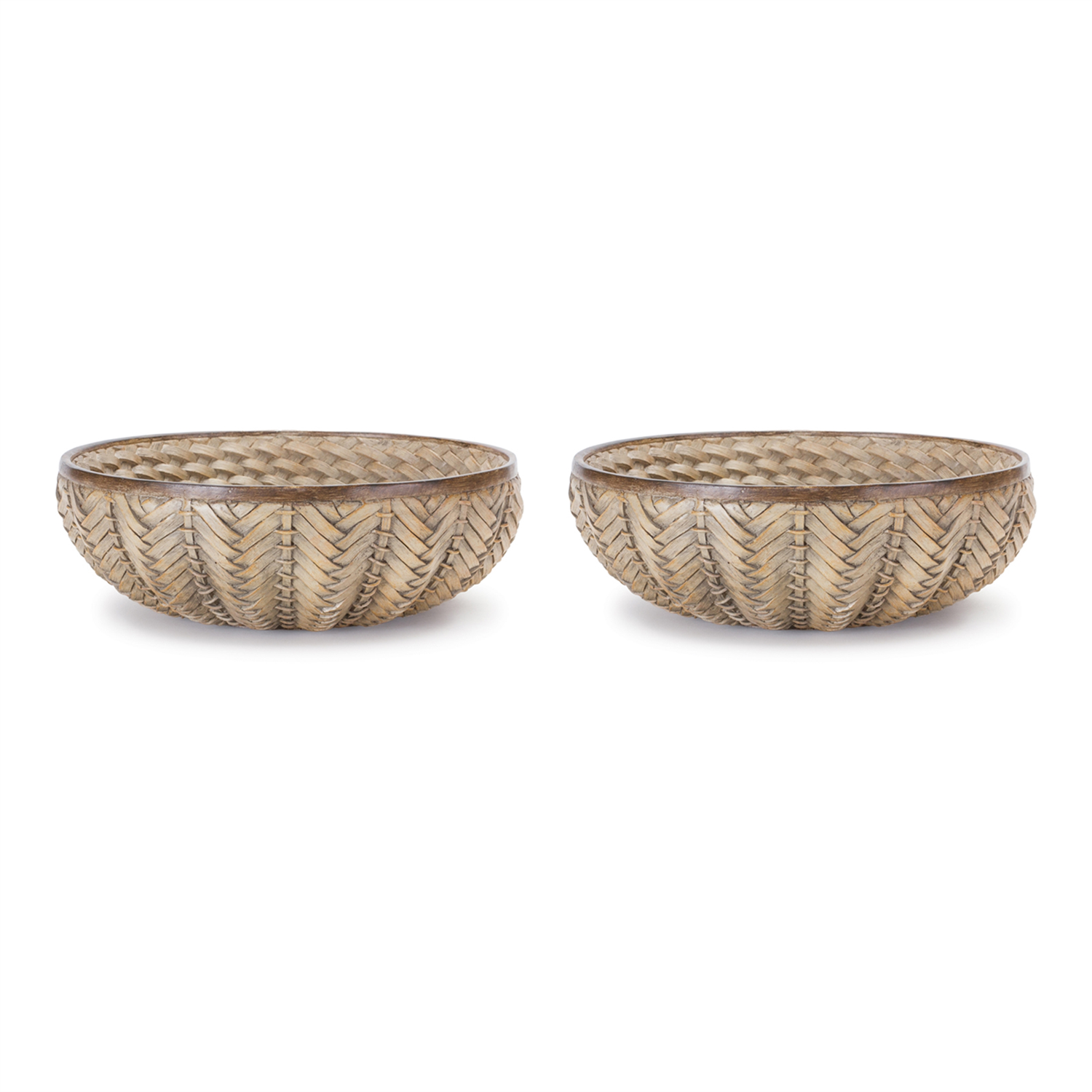 Bring rustic warmth and natural style into your home with this set of Decorative Wicker Design Bowls. Crafted from durable resin to mimic the intricate look of handwoven wicker, these versatile bowls add charm to any space. Whether used to serve dry snacks, hold decorative accents, or simply elevate your tabletop display, these bowls blend beautifully into farmhouse, boho, or transitional decor. Lightweight yet sturdy, they offer the aesthetic of wicker with the lasting quality of resin—perfect for everyday elegance. Sold in a set of two matching pieces to create a balanced and memorable display in your home.