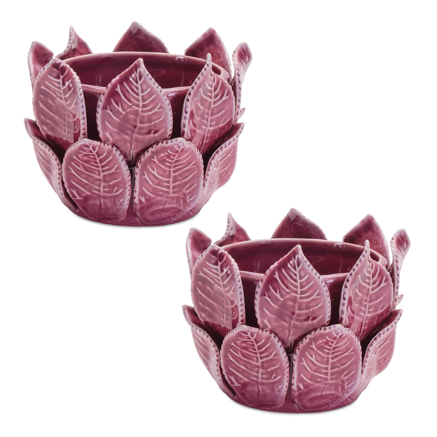 Add a touch of natural elegance to your space with the Stoneware Bud Vase with Leaves Accent. The soft plum purple tones are complemented by a shiny glazed finish, and the delicate three-dimensional stoneware leaves accent creates a sophisticated yet organic feel. Sold in a set of two matching pieces, these vases are perfect for displaying fresh garden stems, small potted succulents, or simply as charming decor on your bookshelf, mantle, or coffee table. This set is ideal for those with a garden chic or eclectic bohemian style.