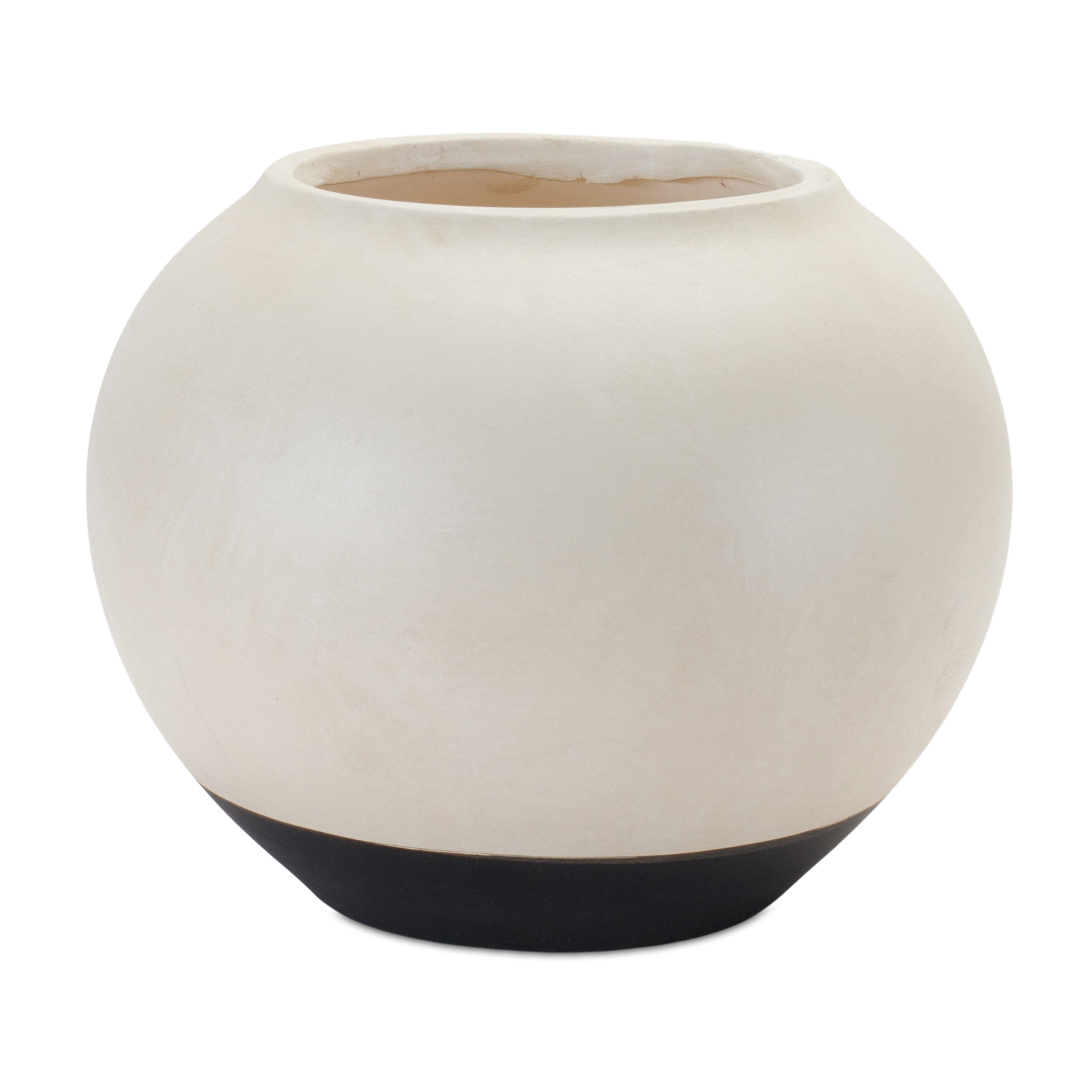 Elevate your home decor with the timeless beauty of this Two-Tone Ceramic Vase. Designed in a classic urn shape, this 8.75-inch vase features a smooth cream body contrasted by a bold, unglazed black accent at the base for a sophisticated two-tone look. Whether used as a standalone piece or to display fresh flowers, it adds instant elegance and a touch of modern refinement to any room. Handcrafted from quality ceramic, this decorative vase is perfect for mantels, shelves, and tabletops.
