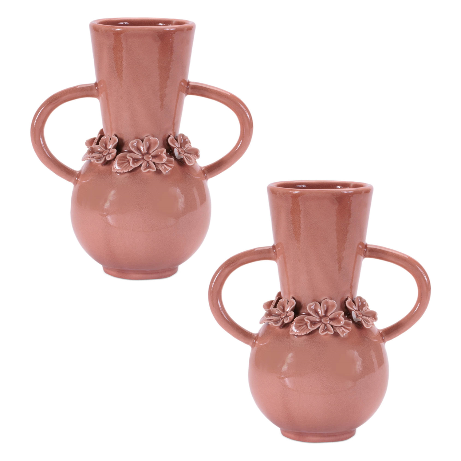 Vase w/Floral (Set of 2) 8”H Stoneware