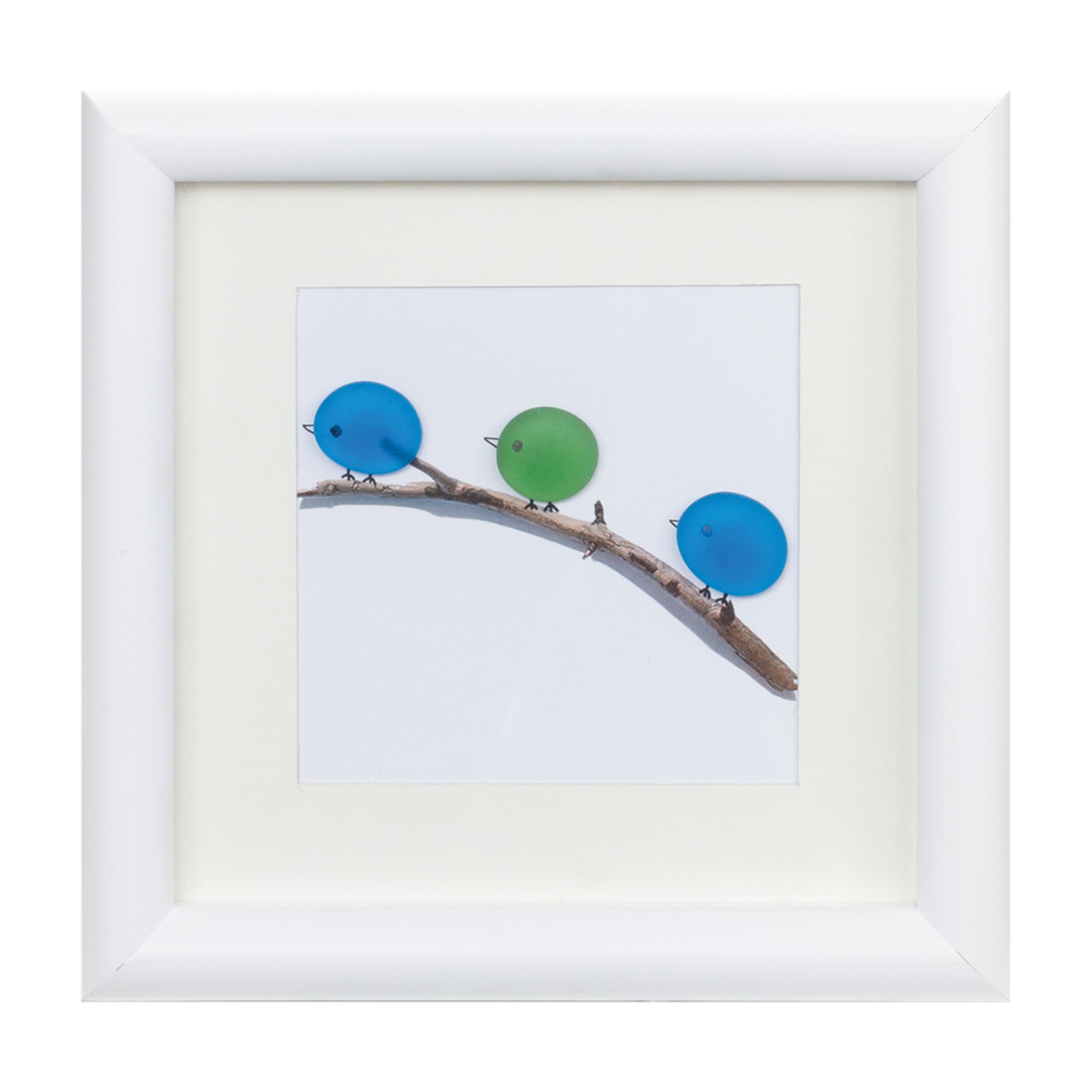 The Bird and Fish Wall Art Set of 2 brings a whimsical coastal charm to your home with its playful designs and vibrant colors. Each 10-inch square piece features a unique scene – one depicting bright blue and green birds perched delicately on a branch, the other showcasing colorful fish accented with natural stone details. Crafted with a sleek white MDF frame and protected by a glass front, these pieces offer a polished look while keeping the artwork safe. Their compact size makes them ideal for adding a splash of personality to small spaces or creating a charming focal point on a gallery wall. Perfect for beach-inspired, cottage, or modern interiors, this set is ready to hang and instantly refresh any room with its lighthearted style.