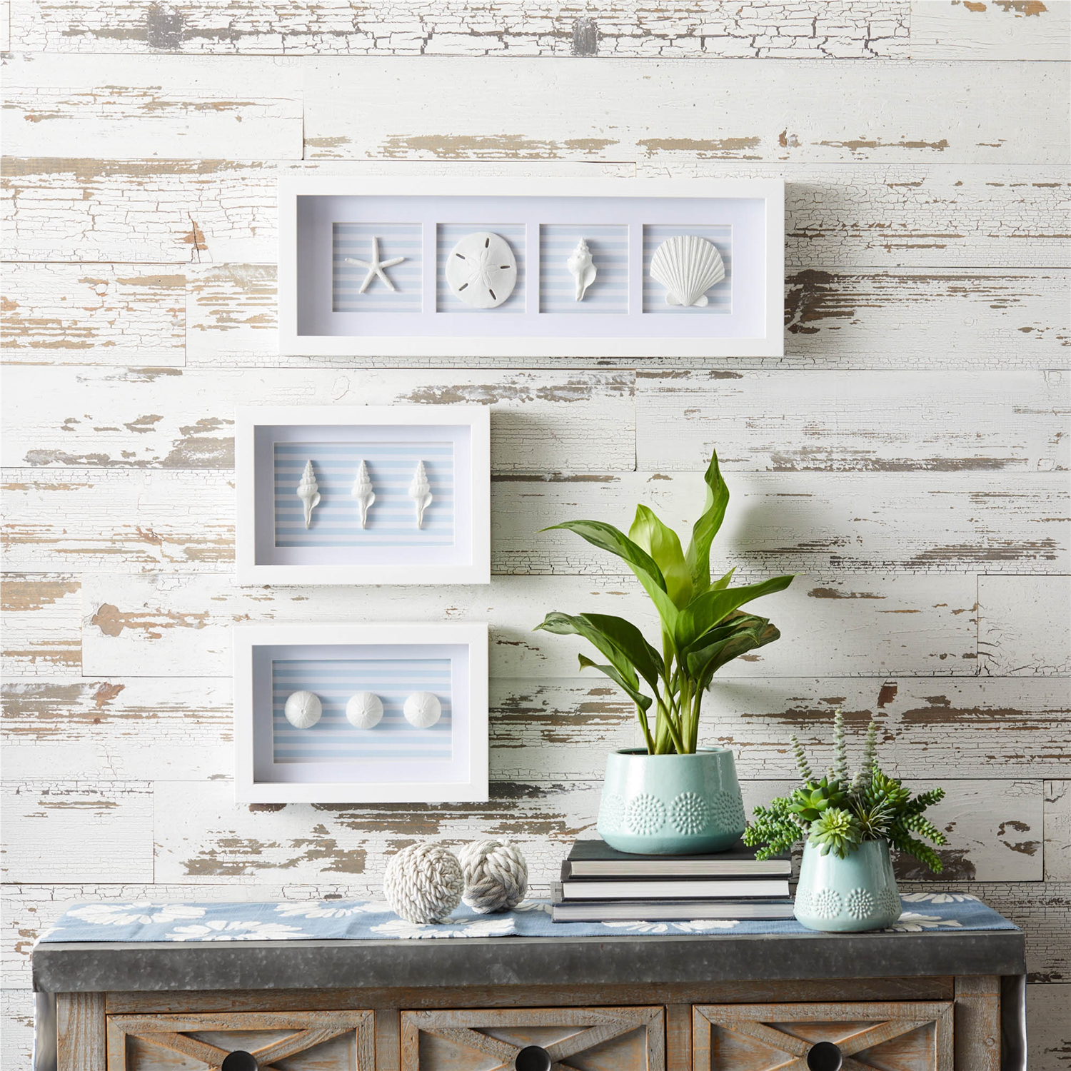 Framed Sand Dollar and Shells Print (Set of 3) 13"L x 9"H, 26.5"L x 9"H Plastic/Resin