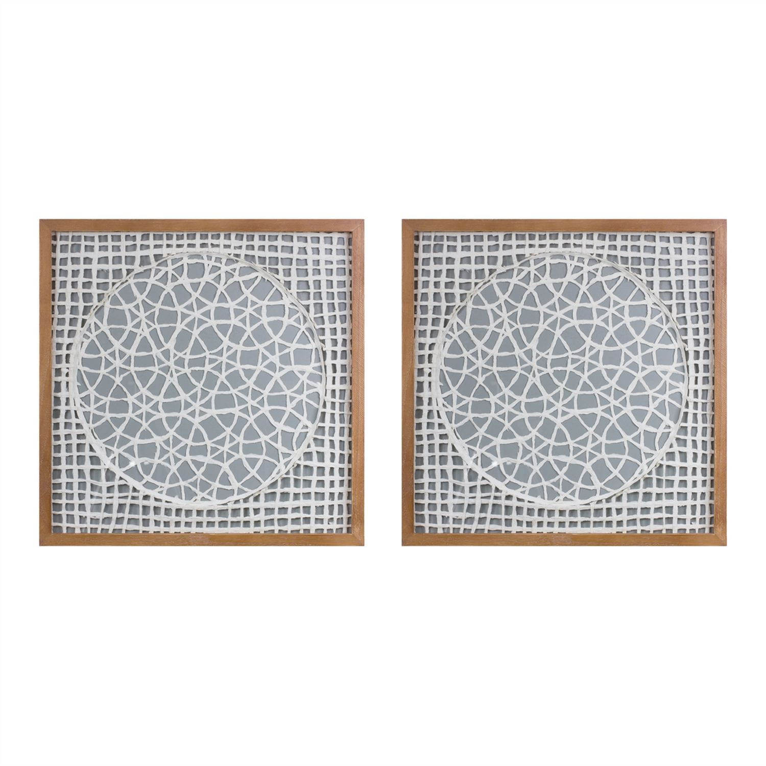 Add modern elegance to your space with this Set of Framed Paper Mache Wall Art. Featuring soft grey and white tones with a natural wood frame, these handcrafted pieces bring texture and visual interest to any room. Whether displayed in your living room, bedroom, or office, their neutral palette and contemporary design make them a versatile and stylish decor choice. Sold in a set of two matching pieces to create a memorable display in your home.