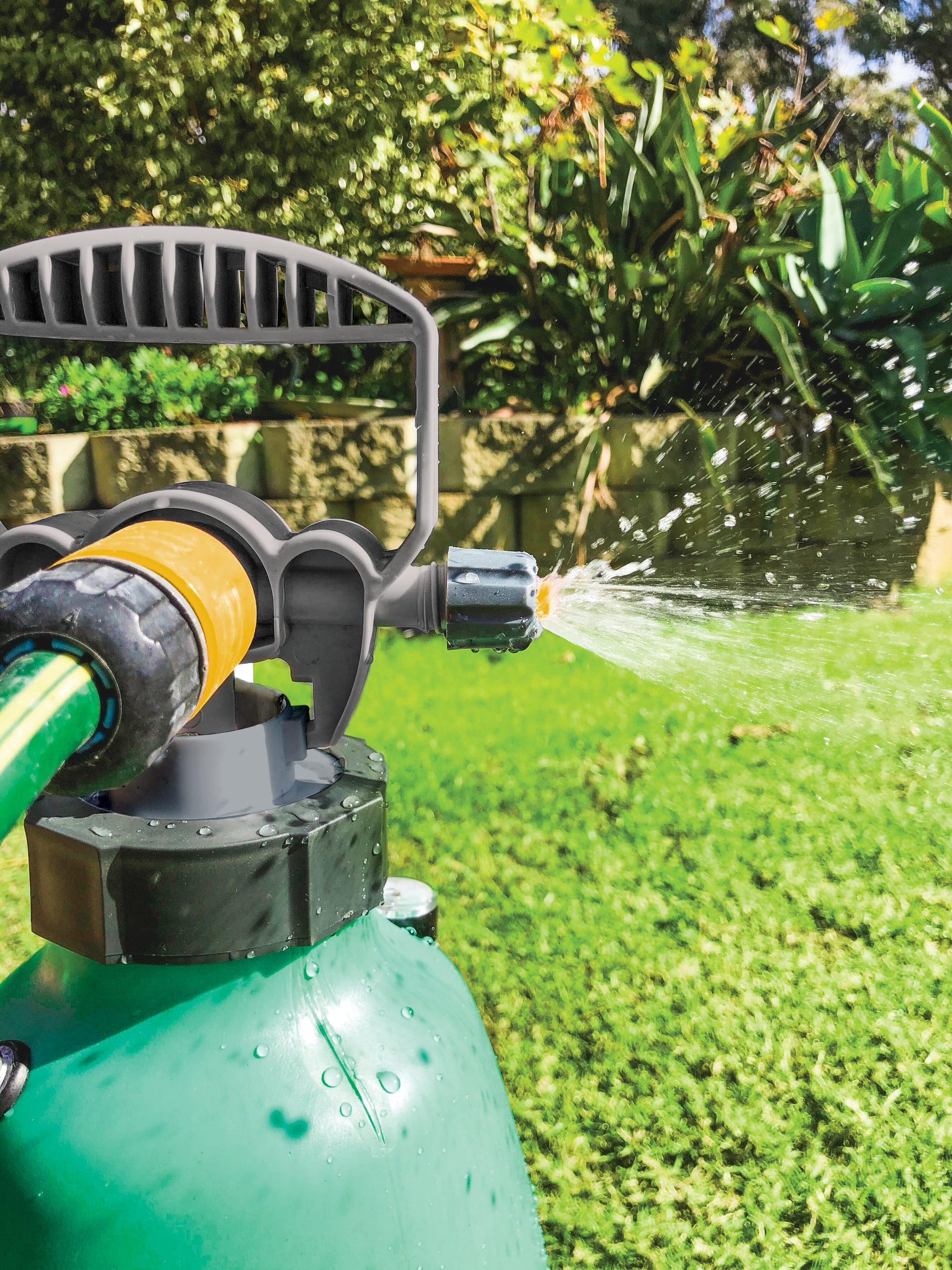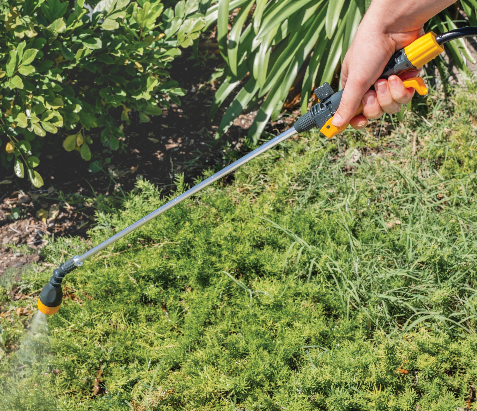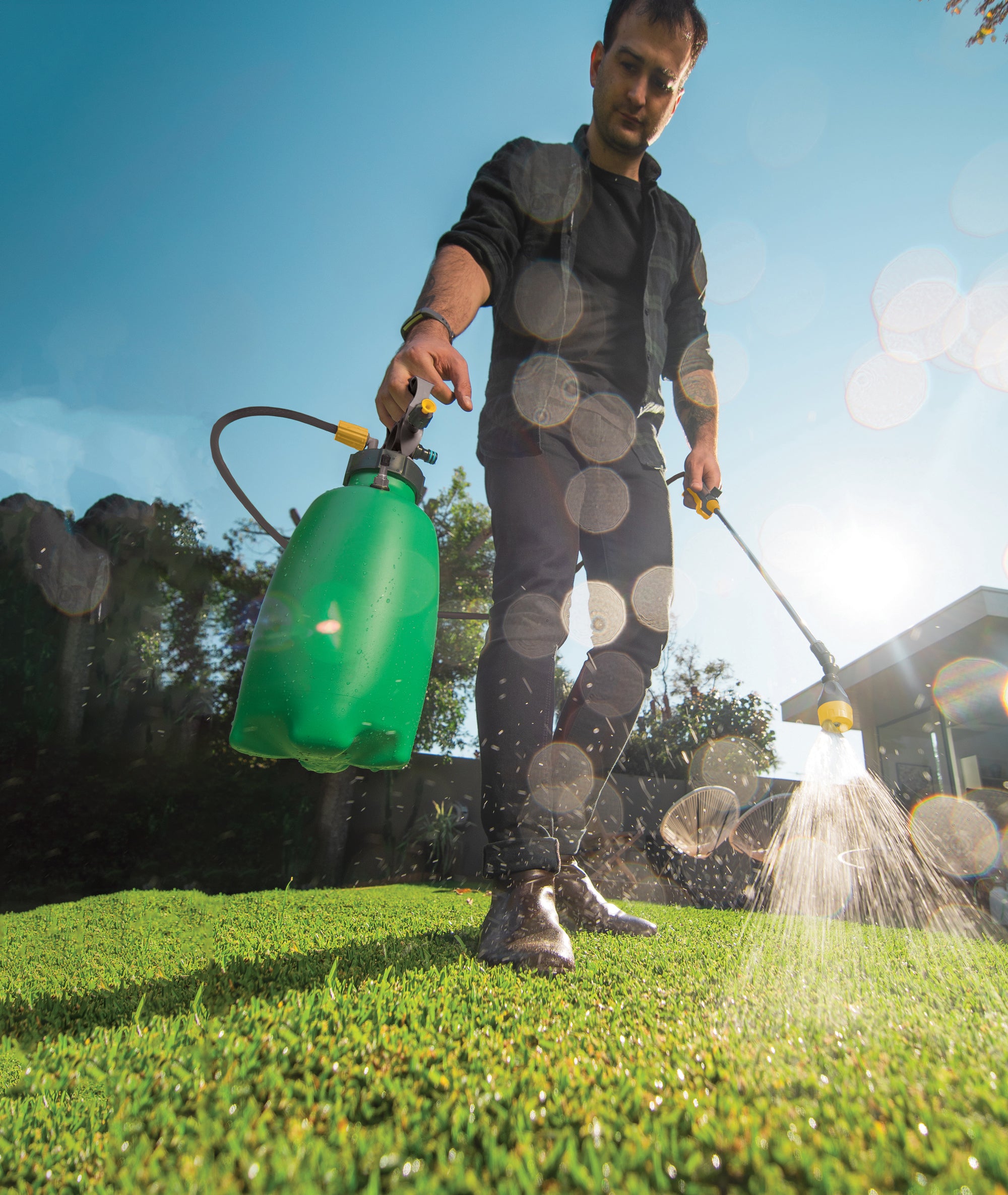 NO pump NO gas NO charge NO battery. .8 gallon sprayer. Just fill & spray. Full pressure from full to empty with the Power Pouch Self-Pressurized System.4 Pattern spray wand reaching as high at 16'. It comes with quick connector hose fittings. Intended use is for application of pesticides fertilizers herbicides and light watering. Handheld with comfort grip.