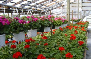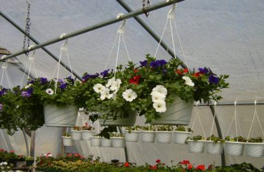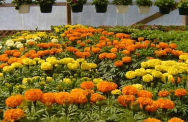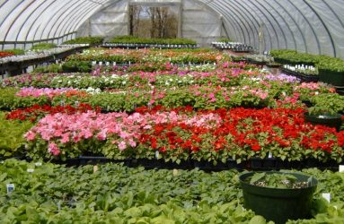 Our greenhouse is celebrated for its flowers and ornamentals, including geraniums (variegated, scented, and colorful), over 30 types of marigolds, 20+ types of pansies and violas, 25+ colors of impatiens, 20+ types of zinnias in short, medium, and tall varieties, hanging baskets, color bowls, and cemetery memorial planters.