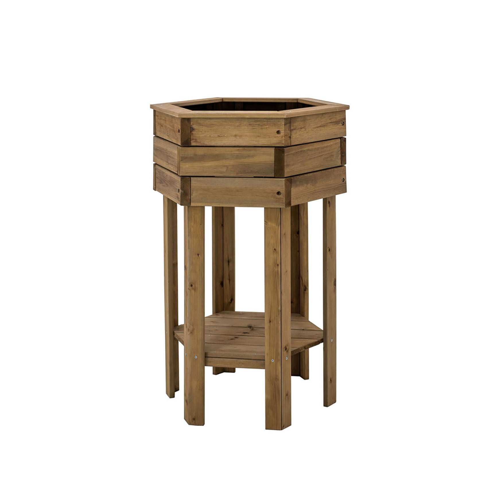 No need to bend down to tend to flowers and plants with this 37.8" high Hexagonal Raised Bed! Made in Europe of pine and spruce wood harvested from environmentally responsible FSC-certified forests. This Raised Bed is treated for protection against decay and wood rot with linseed oil. 22.8"L x 26.5"W x 38"H 37lbs. 90lb capacity. Flower Box size: 22.8"L x 26.5"W x 11"H. Flower Box Inside Dimensions: 20.5"L x 24"W x 9"Deep