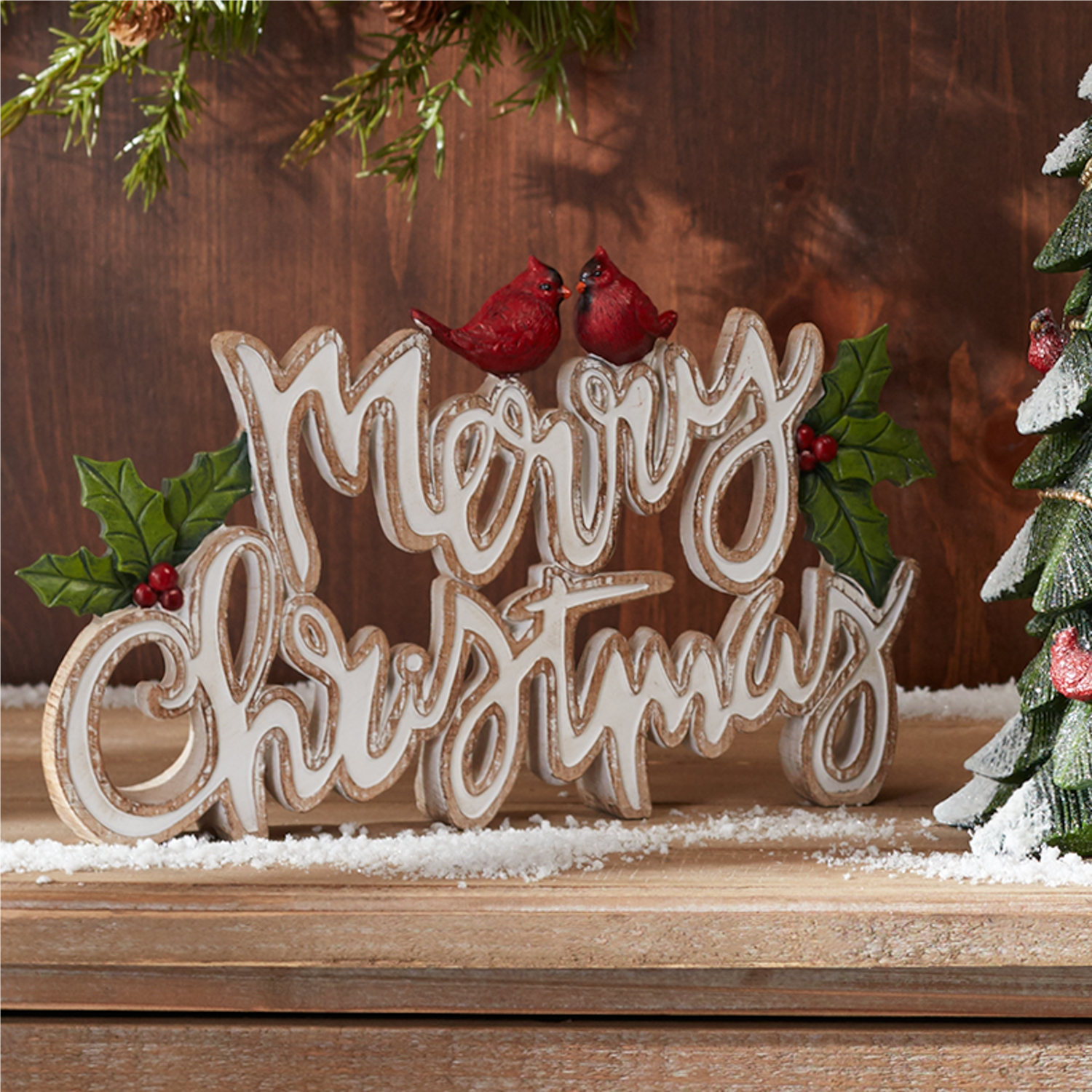 Celebrate the holiday season with this charming Merry Christmas Tabletop Sign Set. Featuring a beautifully scripted “Merry Christmas†message, these resin signs boast a rustic whitewashed finish with delightful cardinal and holly accents. The neutral tones blend seamlessly with any holiday decor, while the elegant cursive lettering adds a sophisticated touch. Whether displayed on a mantel, shelf, or entryway table, these festive signs will bring warmth and cheer to your home all season long! Sold in a set of two matching pieces to create a balanced display in your home.