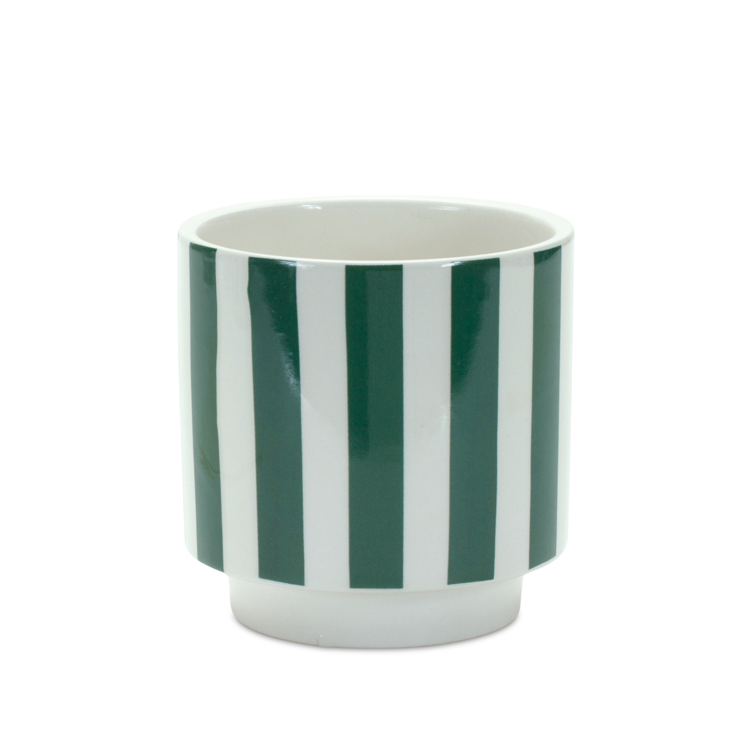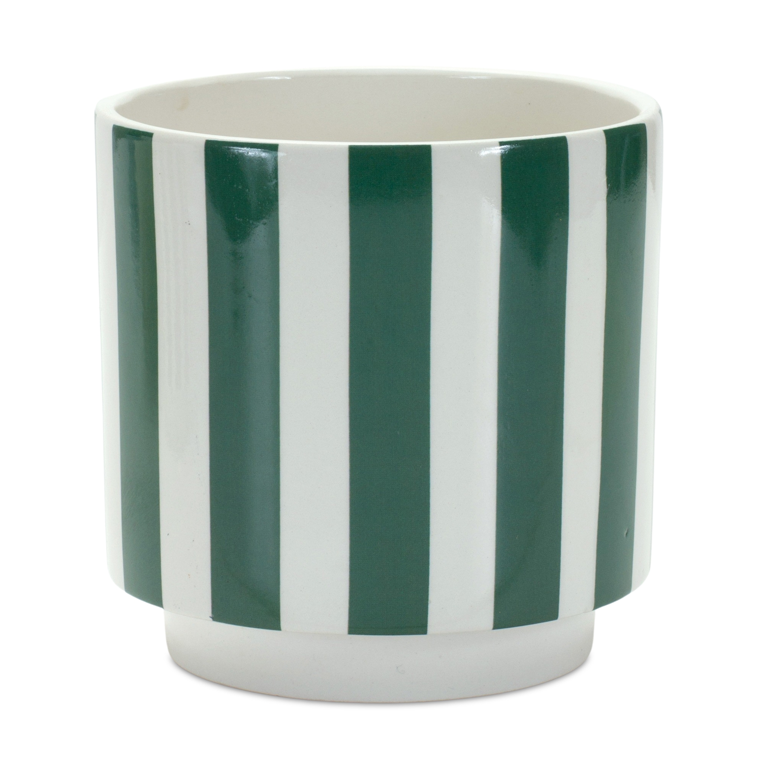 Add a stylish touch to your greenery with this Set of Green and White Striped Planters. With their bold vertical stripes and a fresh blend of deep green and crisp white, these dolomite pots bring modern charm to any space. Crafted with durability in mind and finished with a smooth glaze, they're perfect for showcasing your favorite faux plants or floral arrangements. Designed for indoor or outdoor use, they make a versatile and chic addition to your home decor. Sold in a set of two assorted sizes to create a balanced and memorable display in your home or patio setting.