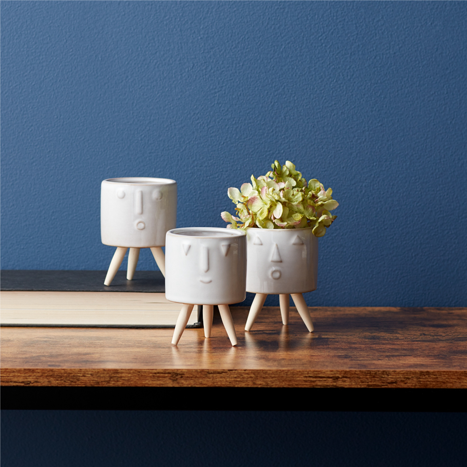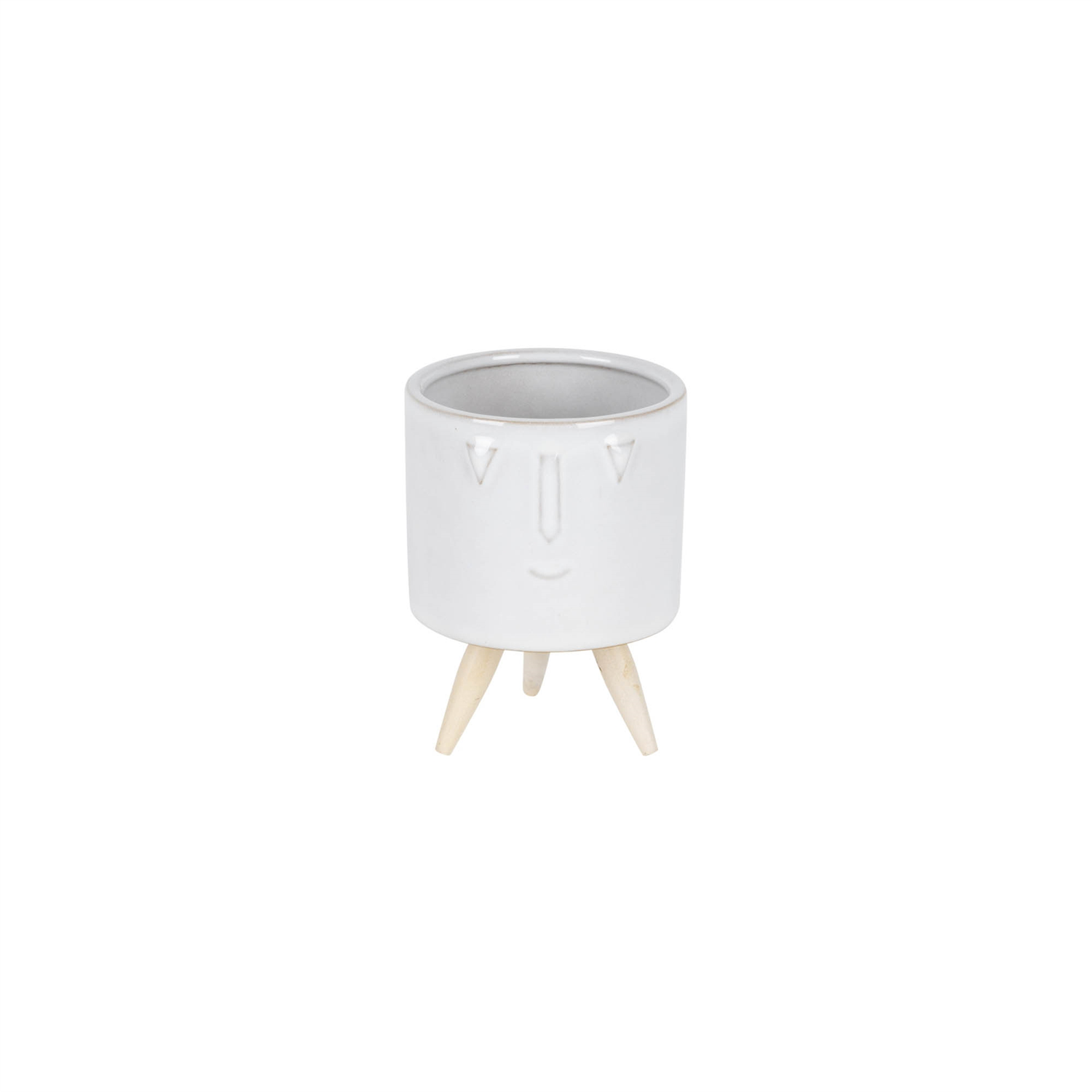 Add personality to your plant styling with this charming set of Porcelain Face Planters. Featuring unique face designs in clean white and earthy brown tones, each pot rests on natural wooden legs for a modern, playful touch. Perfect for displaying succulents, faux plants, or small greenery, these glazed porcelain pots bring whimsy and warmth to any space. Whether styled together or separately, they're a delightful accent for shelves, desks, or windowsills. Sold in a set of three assorted designs to create a balanced and memorable display in your home.