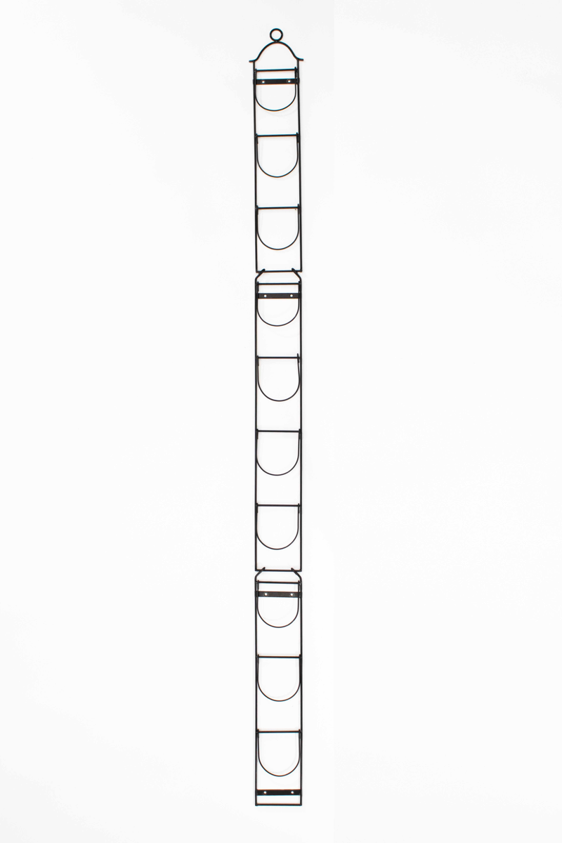 The decorative Italian Style plant holders are made from powder coated steel making them sturdy and long lasting. Just add pots they are ideal for herbs! They are also great for flowers adding interest to a featureless wall or growing plants on a balcony where space is limited. Hardware is included to attach to a wall. Create an instant vertical garden with these decorative wall plant holders to bring life and color to any home. Tall Wall Plant Holder holds 10 of the 4" size pots. Combine with Haxnicks bamboo pots sold separately. Product: 5"L x 4.75"W x 67"H 3lbs. Pack: 27"L x 6"W x 1"H. Pack Size: 1