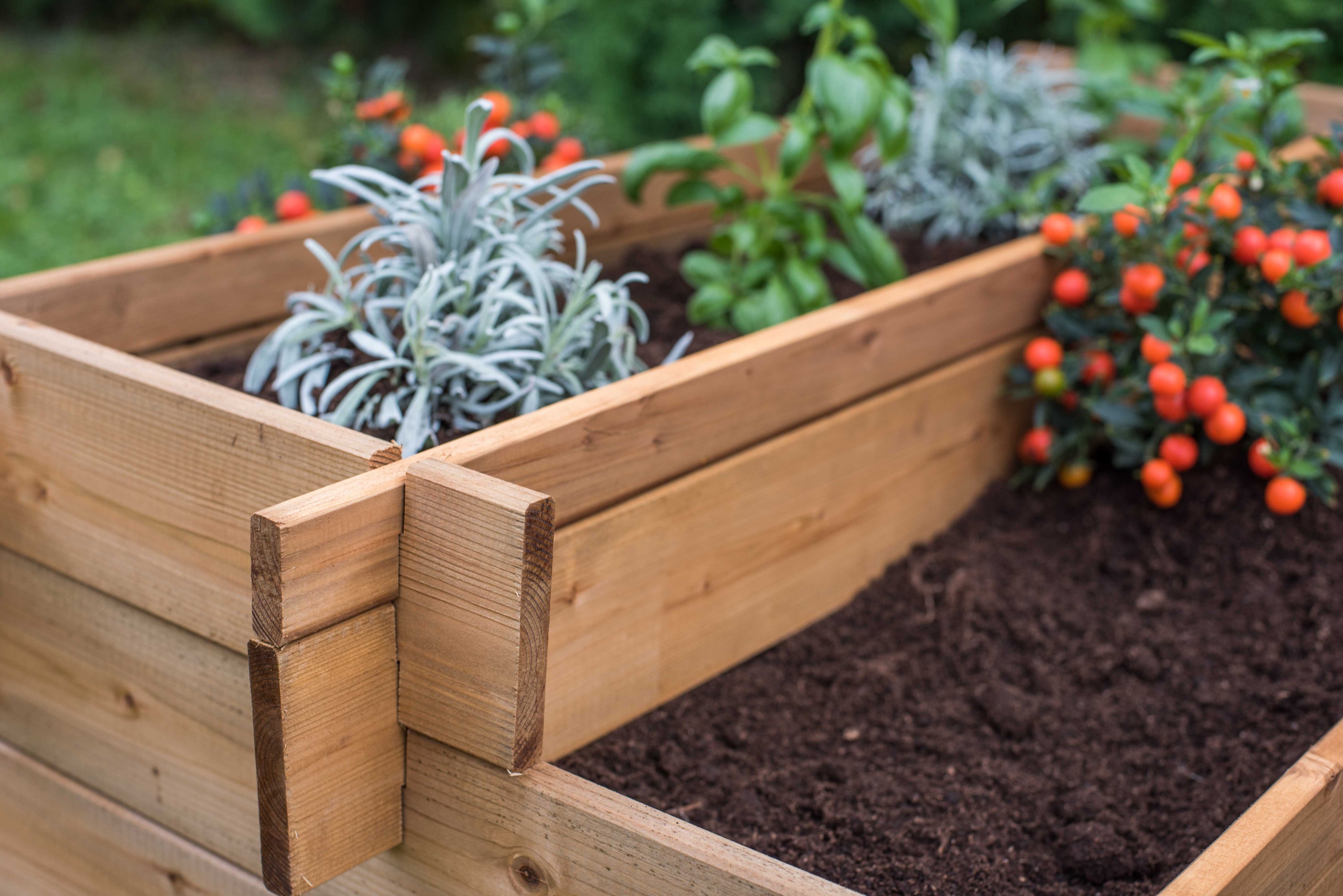 Raised beds have many benefits such as better soil drainage and bringing the planting surface up so there is less stooping over. Treated for protection against wood rot and decay. Made from FSC timber from well managed forests. Shipped with textile liners. Ships flat packed with clear assembly instructions. Treat annually to prolong appearance and strength. 55"Length x 44.5"Width x 14.6"High 28 Lbs with a capacity of 78 gallons.