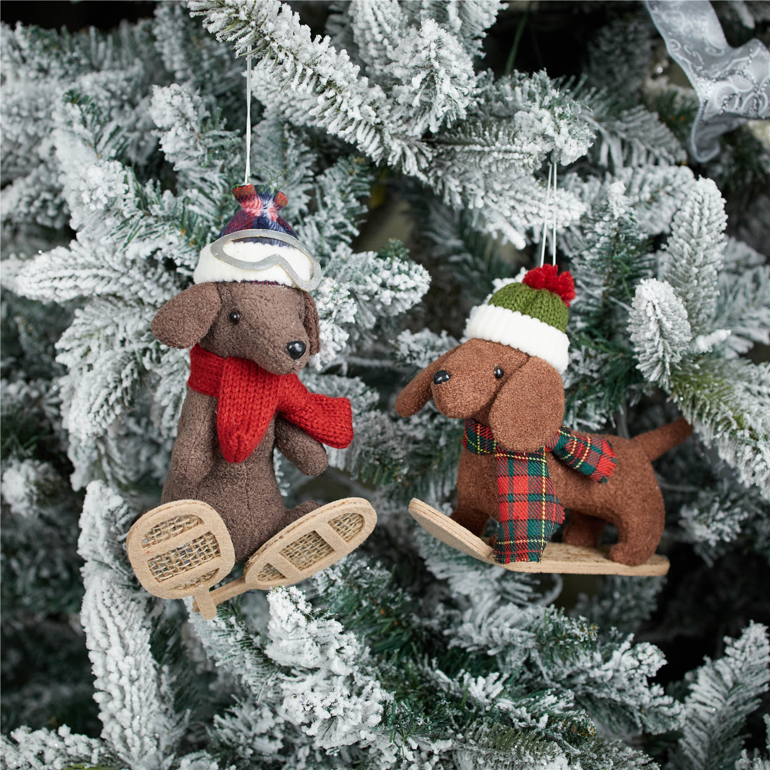 Bring playful charm to your holiday decor with these Plush Ski and Snowboard Dog Ornaments. Featuring festive red and green tones, these adorable dog characters are dressed for winter fun with snowboard and snowshoe accents. Crafted from soft plush material, they make a delightful addition to your Christmas tree or holiday displays. Sold in a set of 6 with two assorted designs, these ornaments also make a perfect gift for dog lovers, spreading holiday cheer and the love of pets throughout the season.